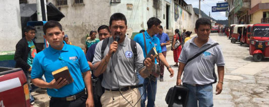 Evangelizing the streets of Quiche, preaching the Word of God around the